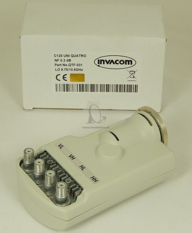 Universal Quatro LNB 0.3dB C120 Invacom prirubovy pre 4 satelitné prijimače -nezavysle sledovanie kazdeho prijímača.