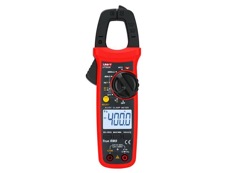 Na tento výrobok poskytujeme 3 roky záruku. Digitálny kliešťový merač UT203R slúži na meranie striedavých a jednosmerných napätí do 600V, AC a DC prúdov do 400A a frekvece 10Hz až 60kHz u napätia nn do 600V a 10Hz až 10MHz u napätí mn. Na všetkých rozsahoch má ochranu pred väčším napätím ako 600V a zvukový a optický alarm. Štvormiestny viac segmentový displej s rozmerom 37 x 25 mm so zadným podsvietením a rýchlu obnovovacou frekvenciou (3krát / s). Roztvorenie čeľustí umožňuje meranie na kábloch s priemerom až 28mm. Bezkontaktné snímanie elektrického poľa (NCV) umožňuje detekovať vodiče pod napätím v dvoch citlivostiach -EFLo a - EFHi pre rozvody nn 110V/50/60Hz a 230V/50/60Hz. Priložená sonda - kryt hrotov na testovacích kábloch umožňuje meranie na rozvodoch nn v kategórii CAT III bez nebezpečenstva vzniku oblúku. Bez krytov na hrotoch možno merať testovacími káble len na rozvodoch nn kategórie CAT II. Napájacie batérie 2ks 1,5V R03. Príkon merača je cca 1,8 mA. Obvod má funkciu automatickej úspory energie. Spotreba v režime spánku je <11uA, čo účinne predlžuje životnosť batérie na cca 400 hodín.