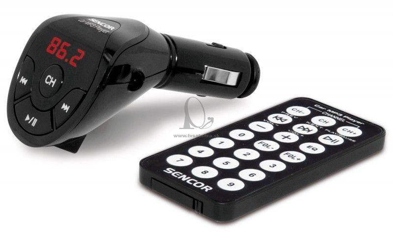 Bezdrôtový FM vysielač Transmitter SENCOR SWM-101 , USB 2.0/Line-In, bezdrôtový prenos MP3 cez FM kanal na radiu , LED displej, nabíjačka, 12V DC napájanie, dialkové ovladanie